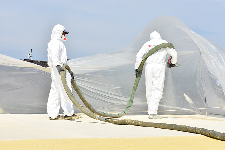 Izolacja dachów płaskich pianą poliuretanową (PUR) stanowi innowacyjne podejście do termicznego zabezpieczenia budynków. Piana poliuretanowa jest ceniona za swoje doskonałe właściwości izolacyjne, które zapewniają skuteczną ochronę przed utratą ciepła przy jednoczesnym zachowaniu lekkiej struktury materiału. Dzięki solidnym właściwościom mechanicznym, pianki PUR doskonale sprawdzają się jako materiał izolacyjny dla dachów płaskich, oferując trwałość i niezawodność. Ich odporność na ogień jest potwierdzona zgodnie z normą EN 13501-5: Broof (t1), co daje pewność w zakresie ochrony przeciwpożarowej.